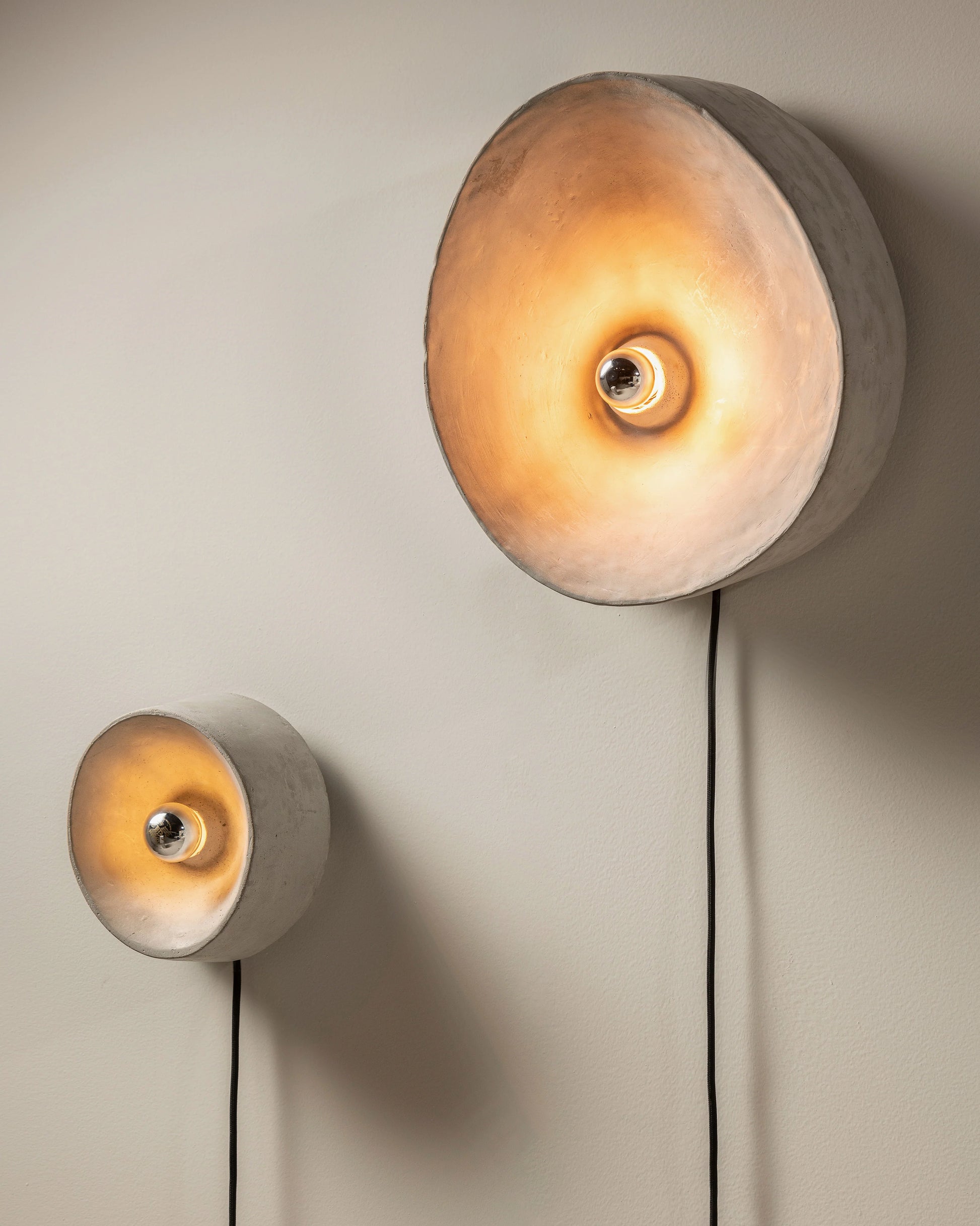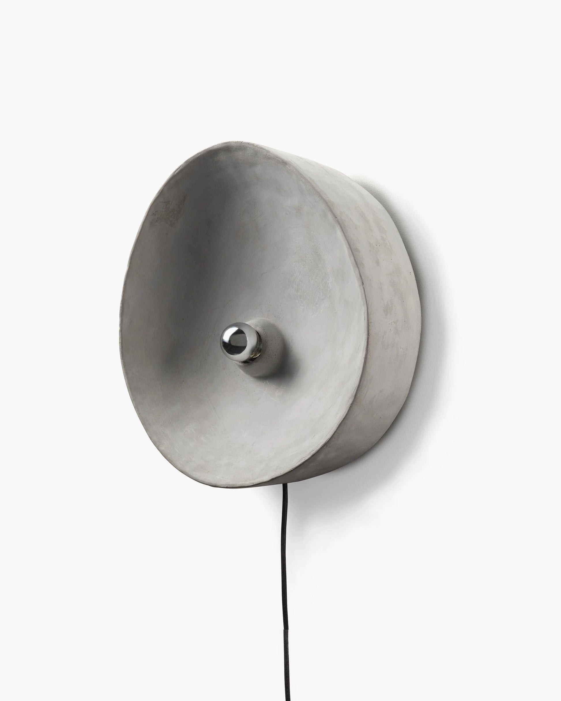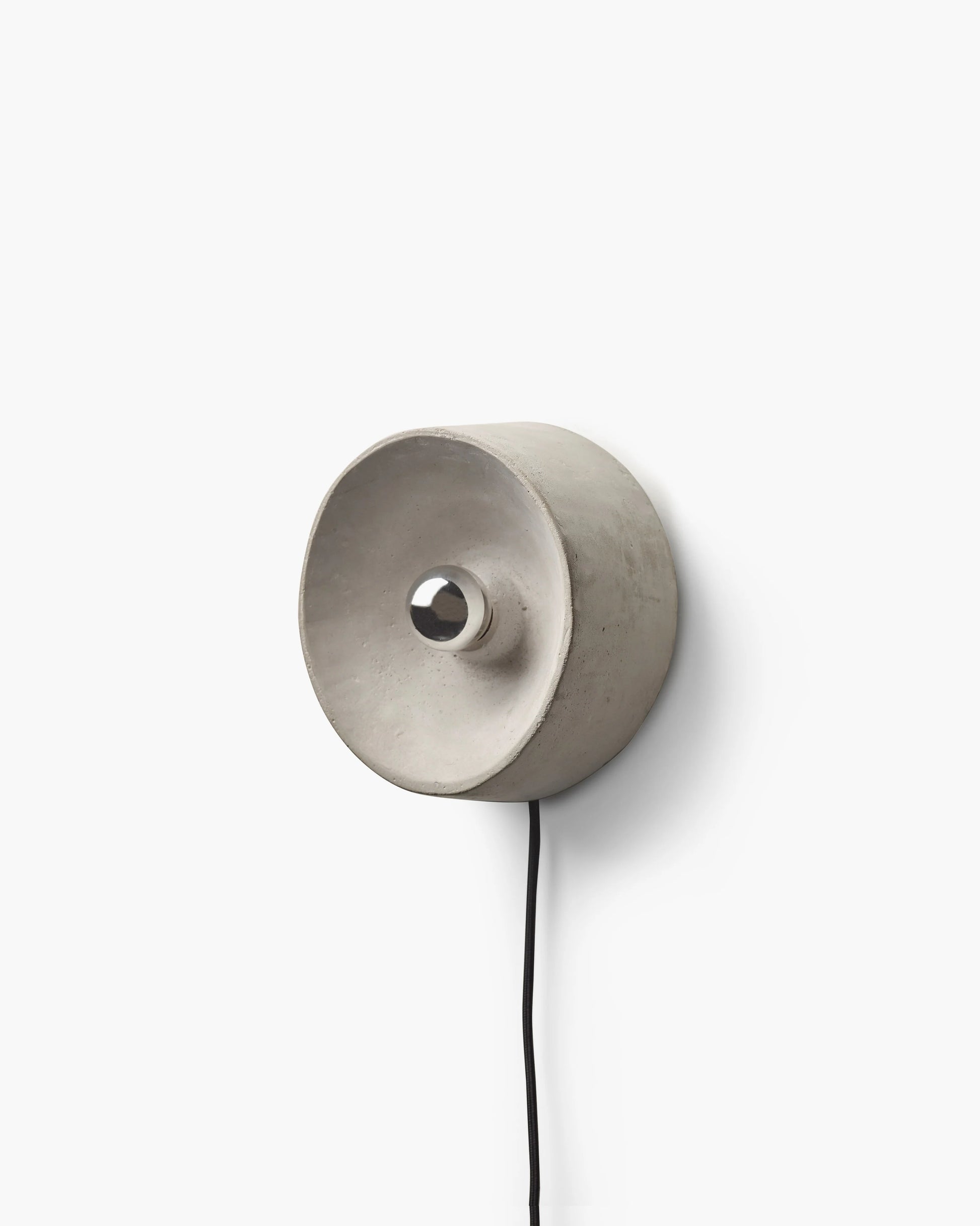 L'applique Chadophe est un réflecteur concave en béton dense qui génère une grande tache de lumière mystérieuse, entourée d'une ombre circulaire s'étirant sur le mur. Avec une suspension à trois points, l'applique peut être montée de différentes manières sur le mur, créant un jeu captivant d'ombre et de lumière lorsque plusieurs lampes sont combinées. En raison de la conception du système de fixation, la lampe est suspendue à quelques centimètres du mur, rendant une partie du support visible.