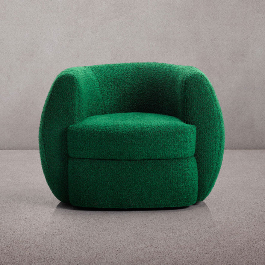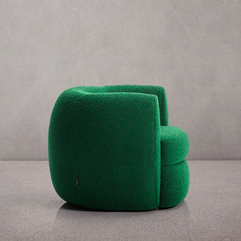 Son dossier rond dessine une silhouette à la fois douce et graphique. Ce fauteuil conjugue avec justesse design affirmé et confort sophistiqué
