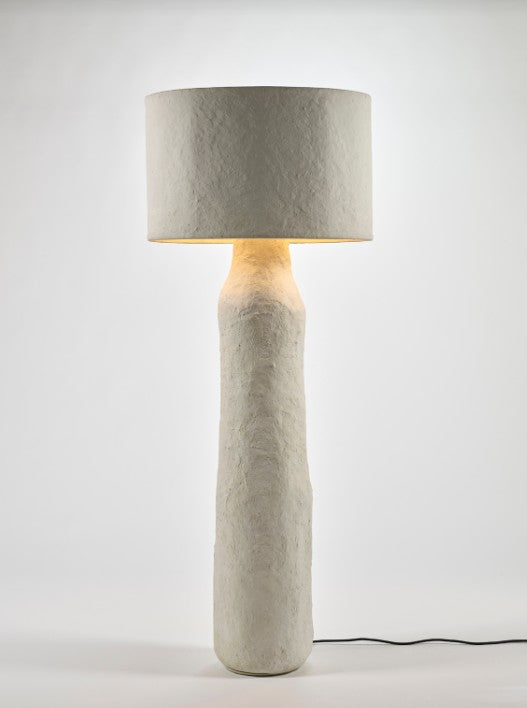 La lampe de sol | EARTH | créée par la designer Marie Michielssen pour la Maison SERAX, est faite en papier mâché modelé à la main. Elle ajoute une forte présence à la pièce sans être écrasante et ressemble à une œuvre sculpturale, diffusant une lumière chaude et diffuse.