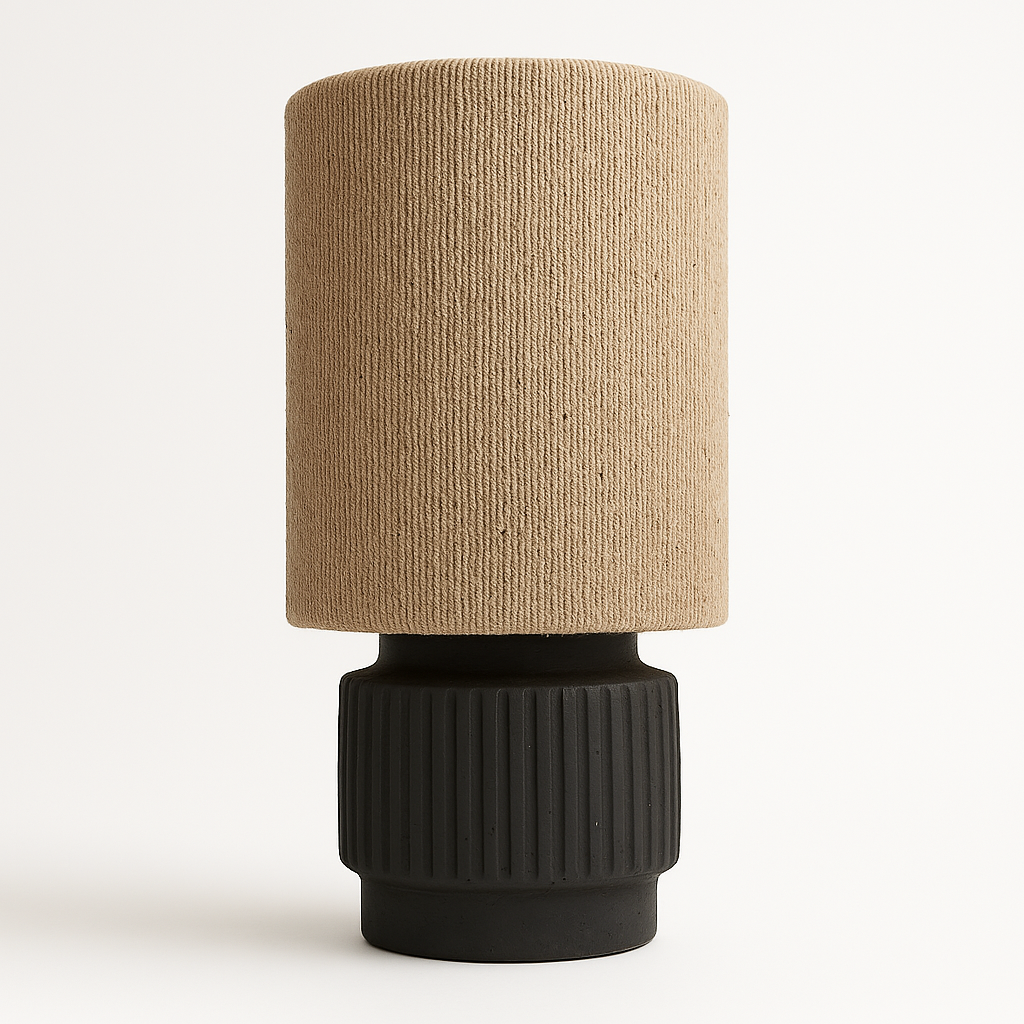 Composition : Abat jour en fibre naturelle et pied céramique.