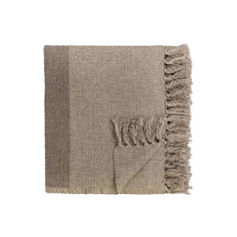 Le plaid PERLA séduit par son allure naturelle et son charme authentique. Confectionné en laine dans des tonalités de beige profond, il joue sur un subtil contraste de nuances pour un rendu chaleureux et raffiné. Ses finitions frangées, signature de la maison Bed and Philosophy et son effet légèrement froissé renforcent son esprit brut et élégant.