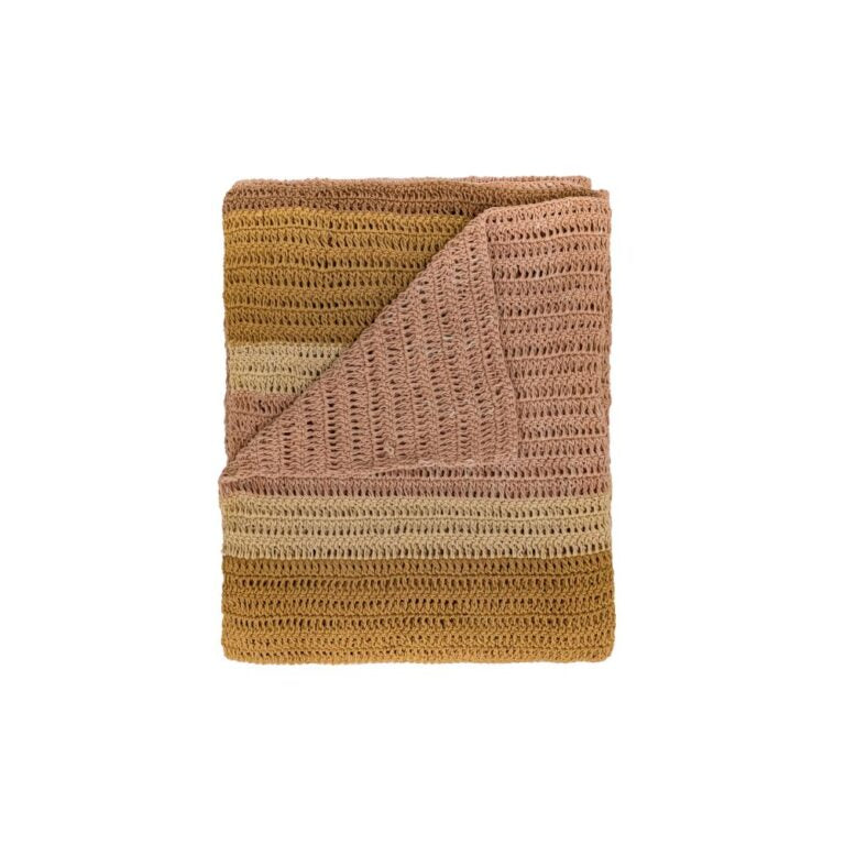 Apportez une touche artisanale et chaleureuse à votre intérieur avec le plaid CUTE en crochet, réalisé à la main. Confectionné dans une palette ensoleillée, aux nuances de miel, de vieux rose et de brun doré, ce plaid unique incarne l’élégance naturelle et le charme des créations fait main.