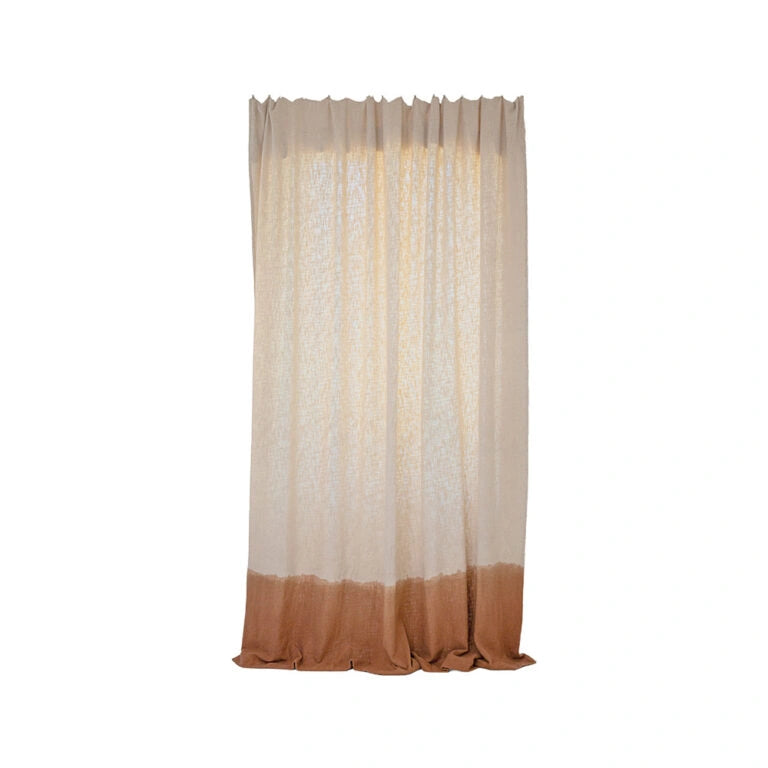 Le rideau TAMTAM, en coton flammé allie le vintage et la simplicité grâce à son coloris blanc cassé et son aspect froissé. Le motif deep dye situé en bas du rideau ajoute la touche d’originalité. La texture rugueuse du coton flammé joue lui un rôle de filtre, permettant de laisser passer la lumière de manière douce et subtil.
