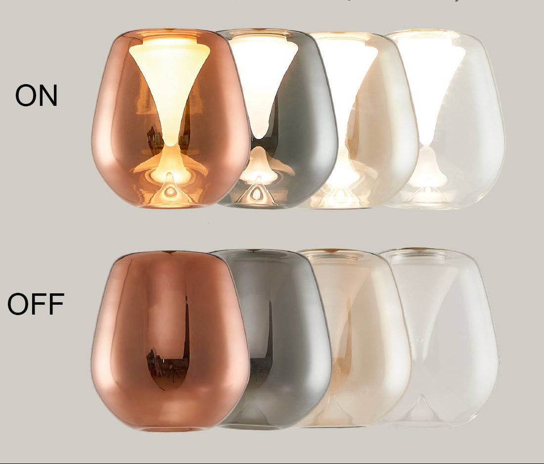 Ce modèle est composé de 5 diffuseurs : 1 bronze, 1 transparent, 1 cuivre, 1 globe transparent, 1 globe chrome.