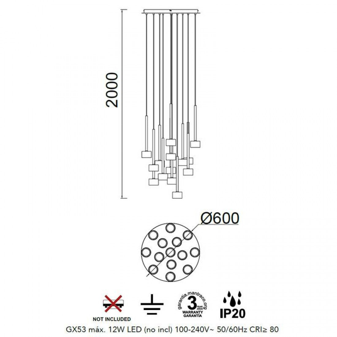 Apportez une touche d’élégance contemporaine à votre intérieur avec ce magnifique luminaire, composé de 14 suspensions, suspendues à des hauteurs différentes.